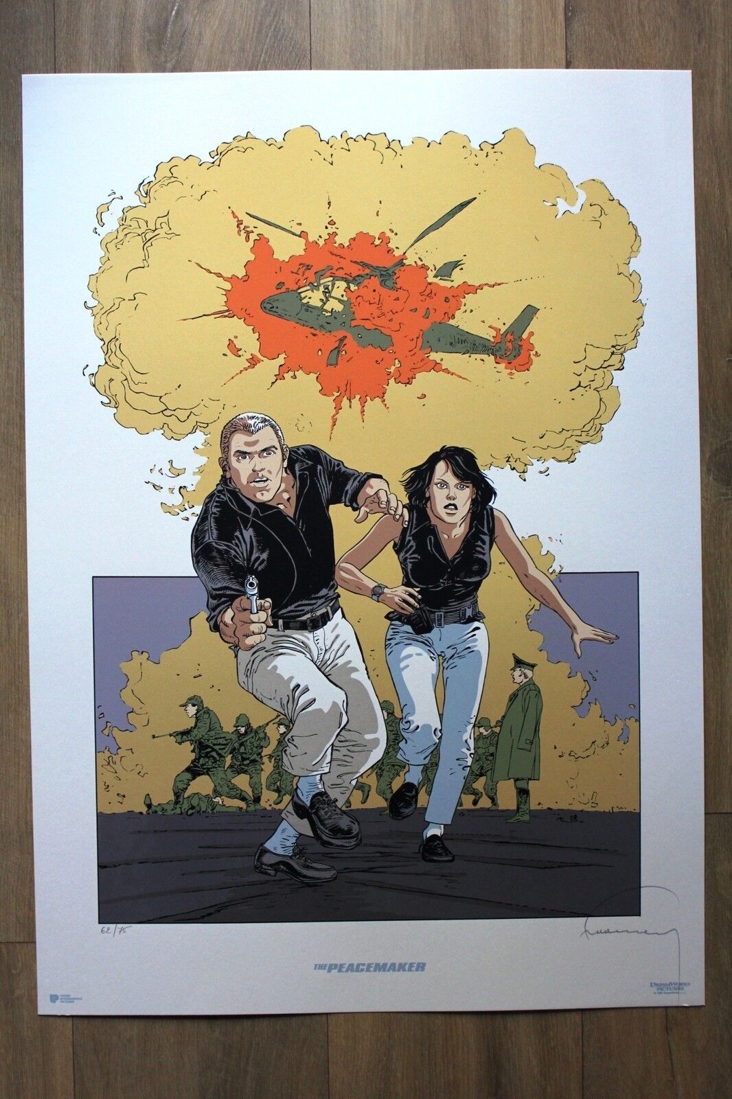 HERMANN Magnifique et rare sérigraphie 8 passages couleurs de Hermann reprenant un dessin inédit d’une couverture/affiche alternative de The Peacemaker dans le style Mondo Graphics Format : 70 x 50 cm – Beau Papier Numéroté (62/75) et Signé Comme neuf Merci de m’écrire pour toutes questions supplémentaires.