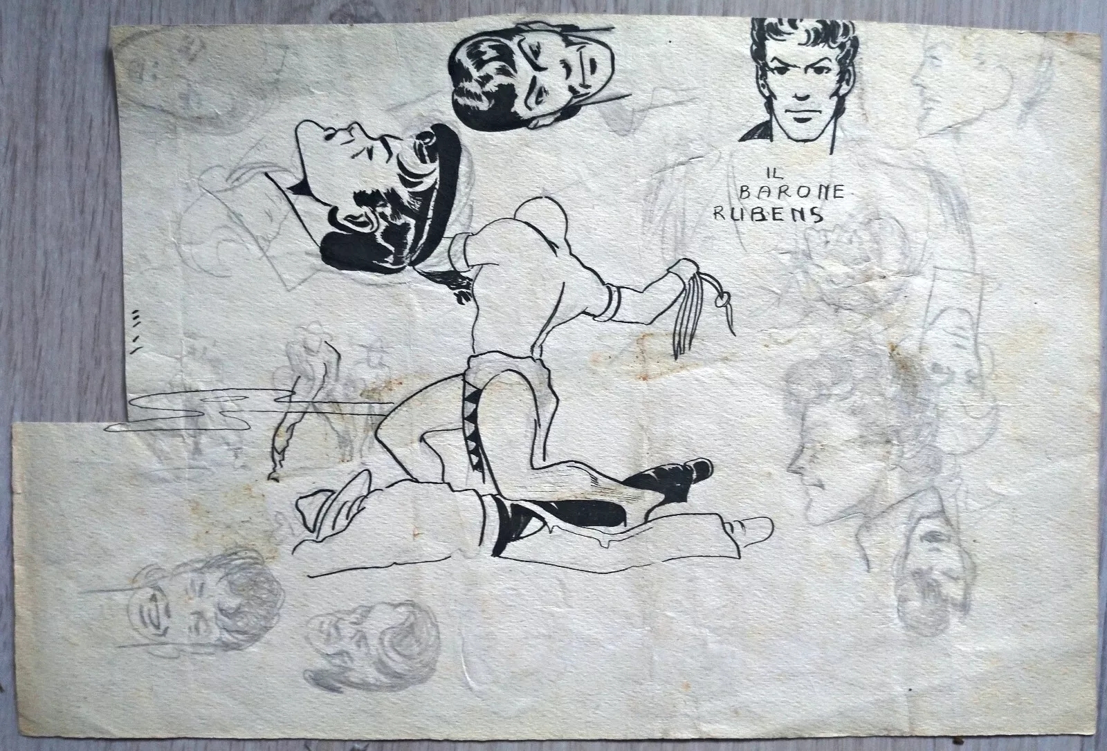HUGO PRATT – Dessin original / croquis PERIODE ARGENTINE (1949-1962)