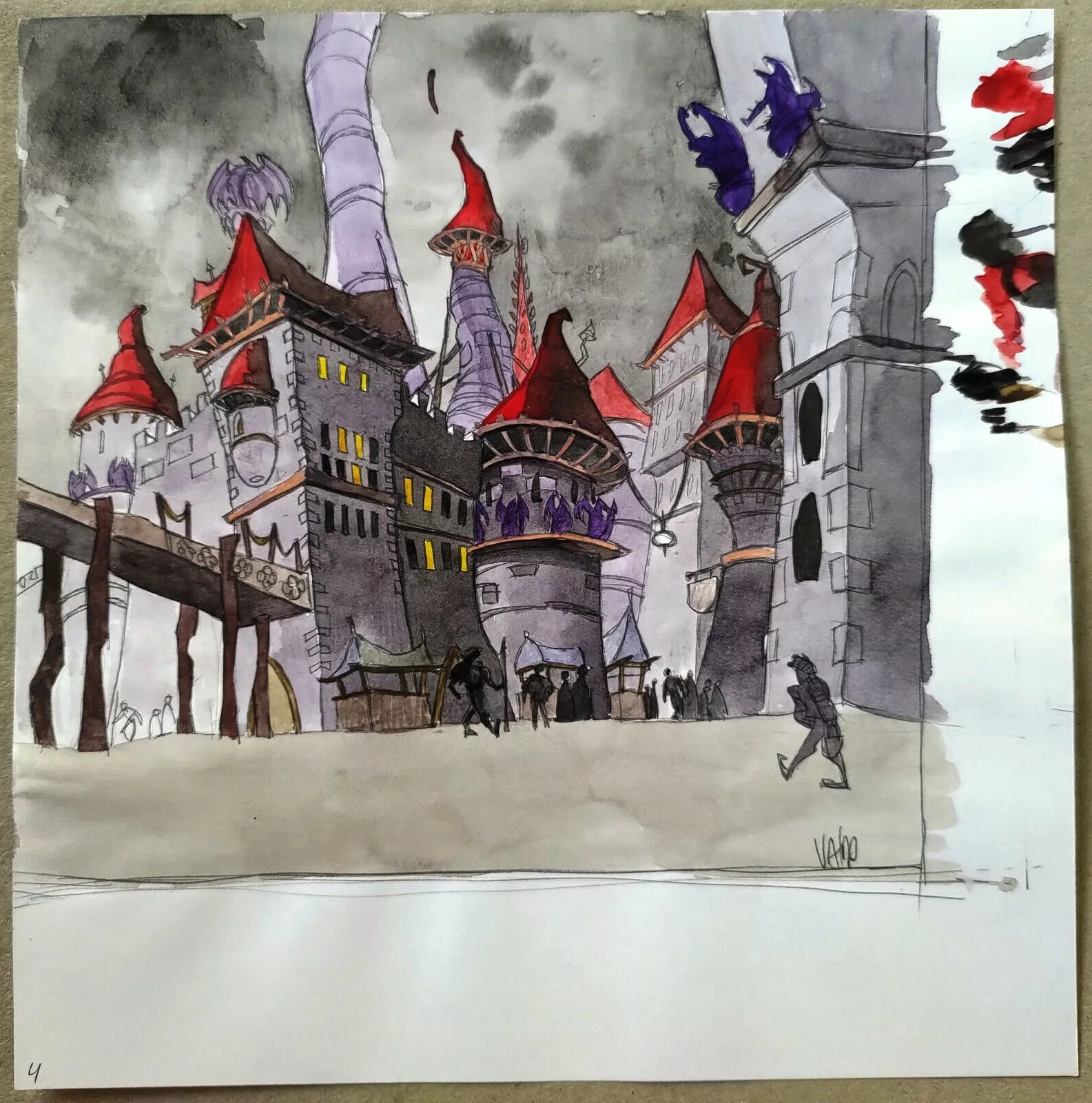Magnifique dessin original couleur de Valp à l’encre de chine et auarelle de Ashrel