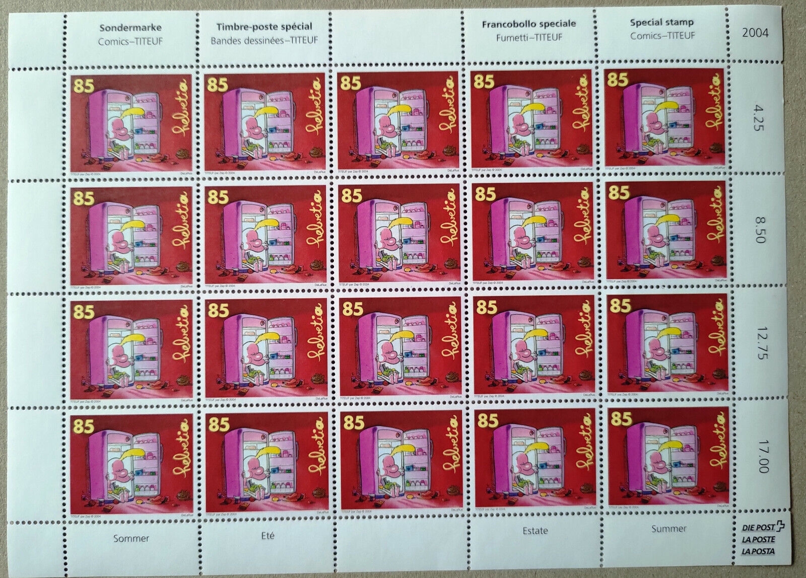 ZEP – TITEUF PLAQUE DE TIMBRES (20X) ETE non oblitéré – 2004